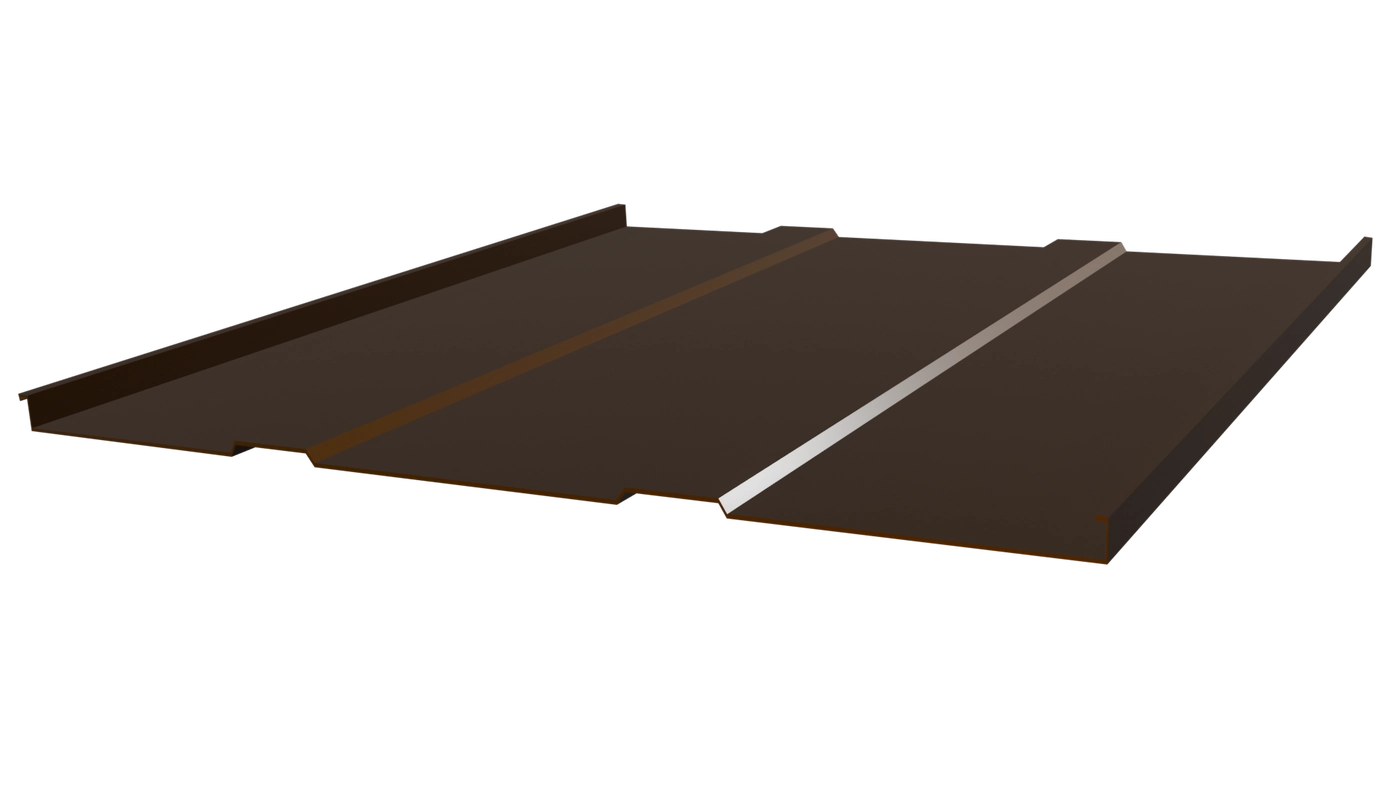 Фальцевая кровля 545 (0,65/8017 шоколад) - самый надёжный кровельный материал. Отсутствие сквозных отверстий, скрытый крепёж и надёжный замок полностью исключают возможность протечек.
